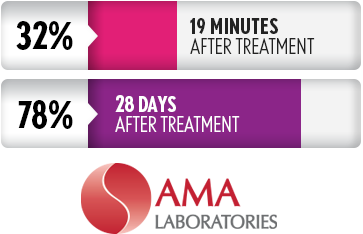 After 19 minutes the average reduction of fine lines, wrinkles, saggy skin, sand paper (crepey) skin texture and dry skin was 32%. These results improved to 61% after 14 days use and 78% after 28 days.
